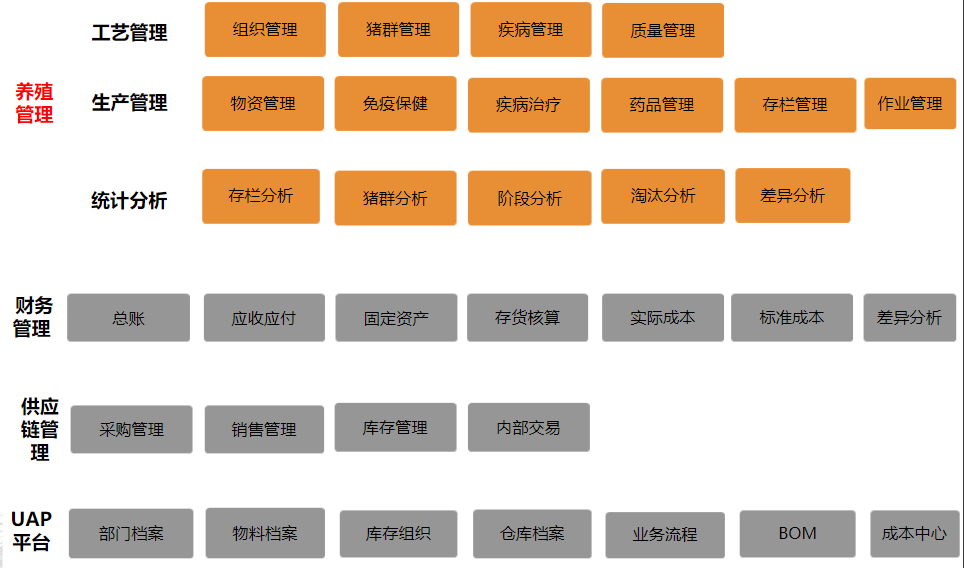 案例介紹:養殖行業項目總結一、養豬企業信息化存在的問題1、集團管控集團規模越來越龐大,地域分布越來越廣,手工管控模式越來越失控,經營風險越來越來大。2、業財一體化業務與財務嚴重脫節,業務驅動不了財務,財務也反應不了業務,管理越來越冗于具體的事務中3、內外互聯產業鏈越來越長、內部交易越來越頻繁,必須理順關聯交易,弄清實際經營狀況的同量,更需要建立內外協同的應用系統4、實時透明大量的經營統計和數據分析,全部依賴手工模式收集..