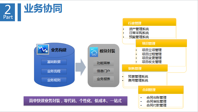 第二環(huán),是業(yè)務(wù)之間的協(xié)同,工作和業(yè)務(wù)又形成相互的融合。根據(jù)企業(yè)業(yè)務(wù)場景,為企業(yè)量身定制,覆蓋各個(gè)層面與領(lǐng)域。